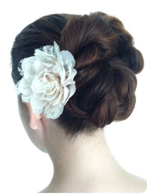 6) Bring the tail of the next braid counterclockwise allowing it to spiral into the center like a snail shape, pinning as you go along.